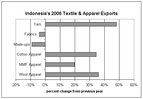 The textiles and apparel industry recorded negative growth in production in 2009. The textiles segment recorded a greater decline (-22.6%), compare with the apparel segment (-18%). The major decline was in the manufacture of knitted and crocheted fabrics and articles which had decreased by 29%.