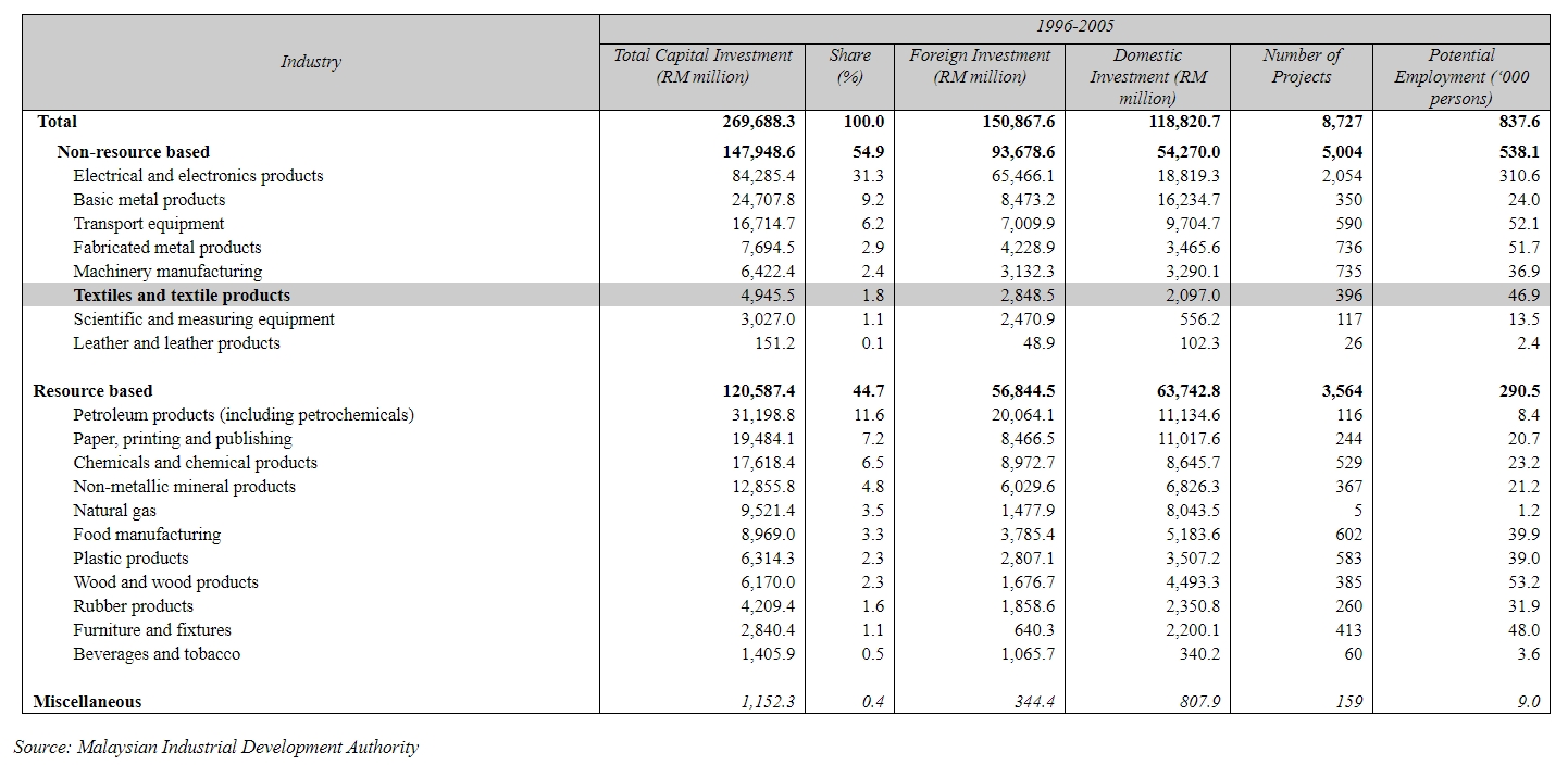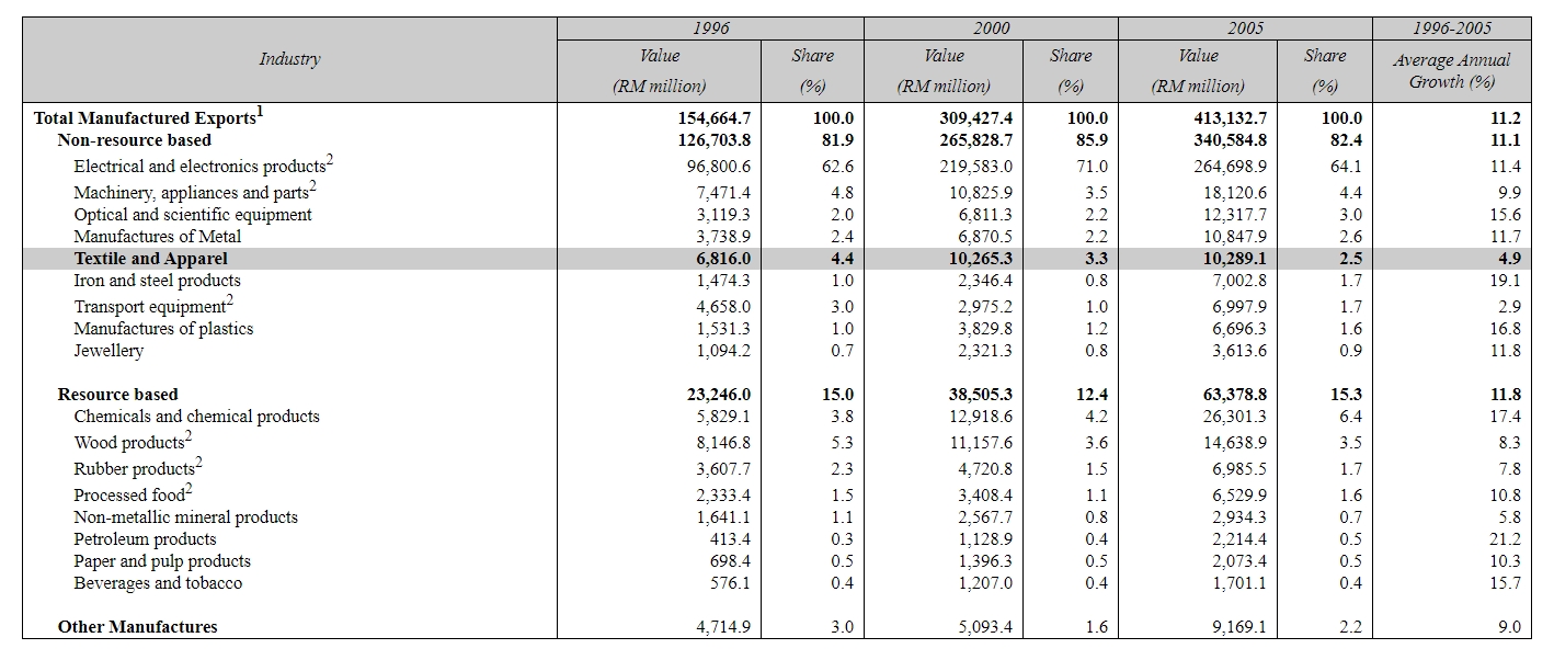 MALAYSIAN TEXTILES AND APPAREL INDUSTRY