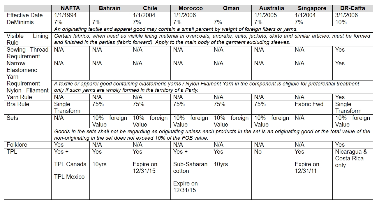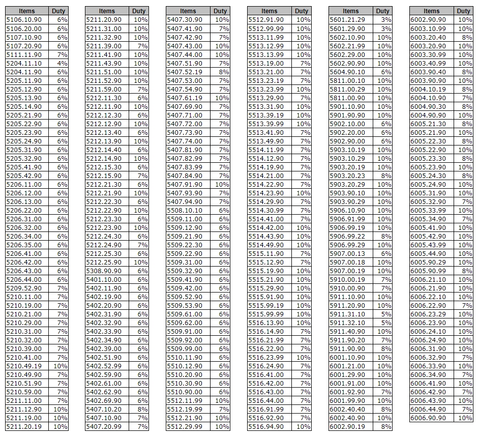 Details of tariff schedules under MNZFTA (focusing on textile and apparel items only) for both countries.