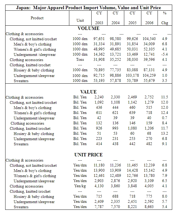 • The per capita consumption of textiles for the year 2007 is 22.41 metres as against 21.49 metres in 2006 recording a growth of 4.28 %. On an average, a person purchased and used 0.92 metres more of textiles and clothing in the year 2007 than the previous year.